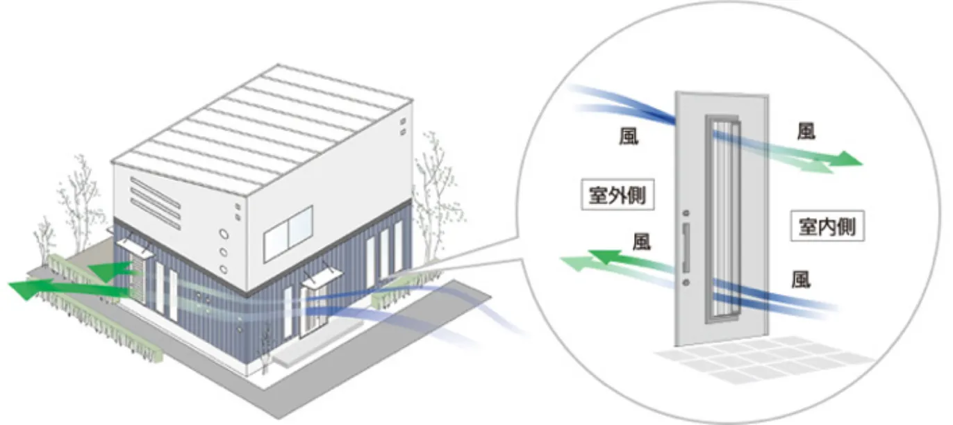 扉を閉めたまま効率的に通風・換気ができます。