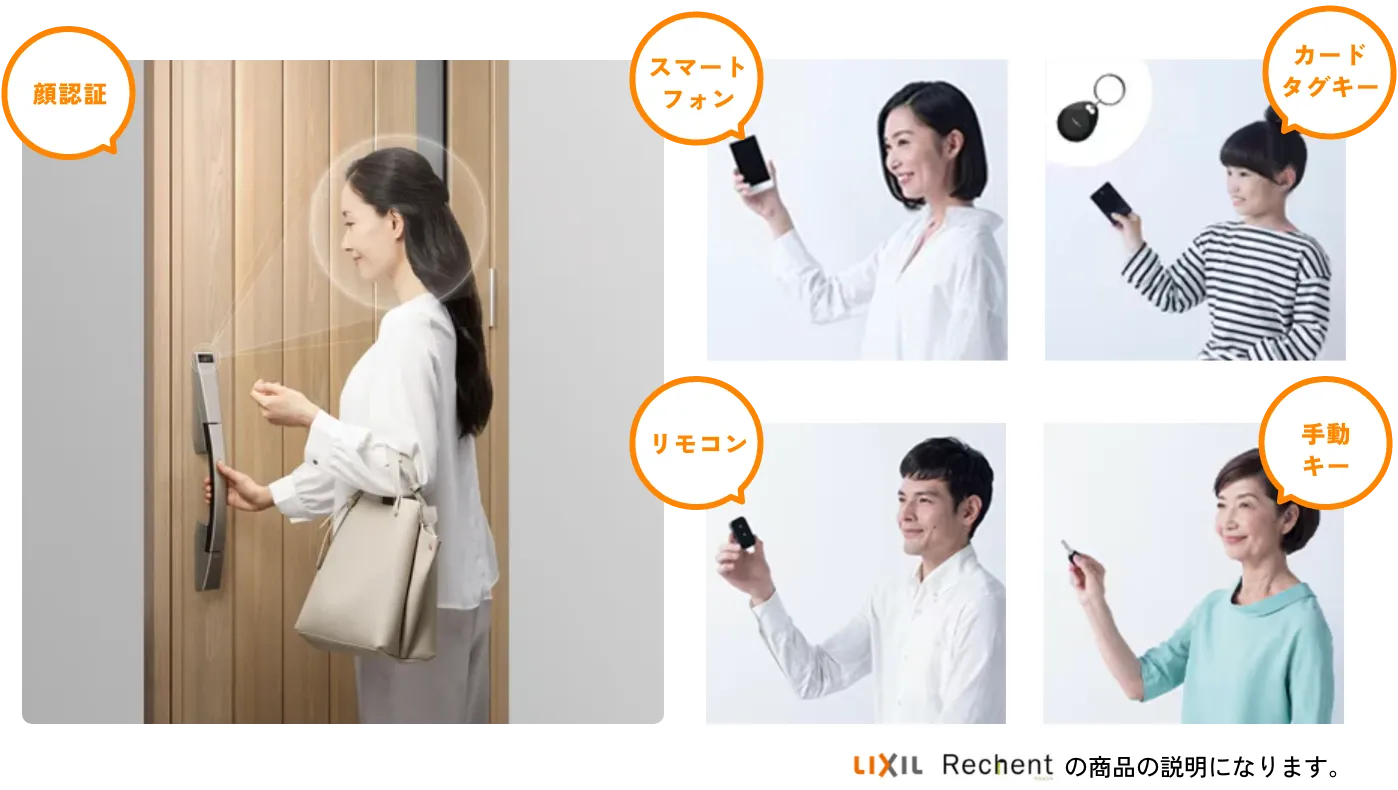 クルマのキーのように、ボタンに触れるだけでカギがオープン。荷物で両手がふさがっていてもラクラク解錠できちゃいます。キーレスで毎日のお出かけも快適に。※手動キーもご用意しています。