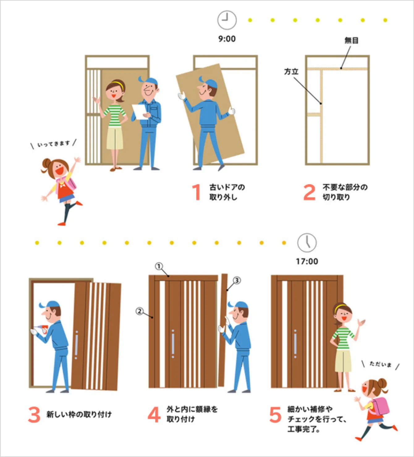 「いってきます」から「ただいま」の間に玄関がリフォームできます。