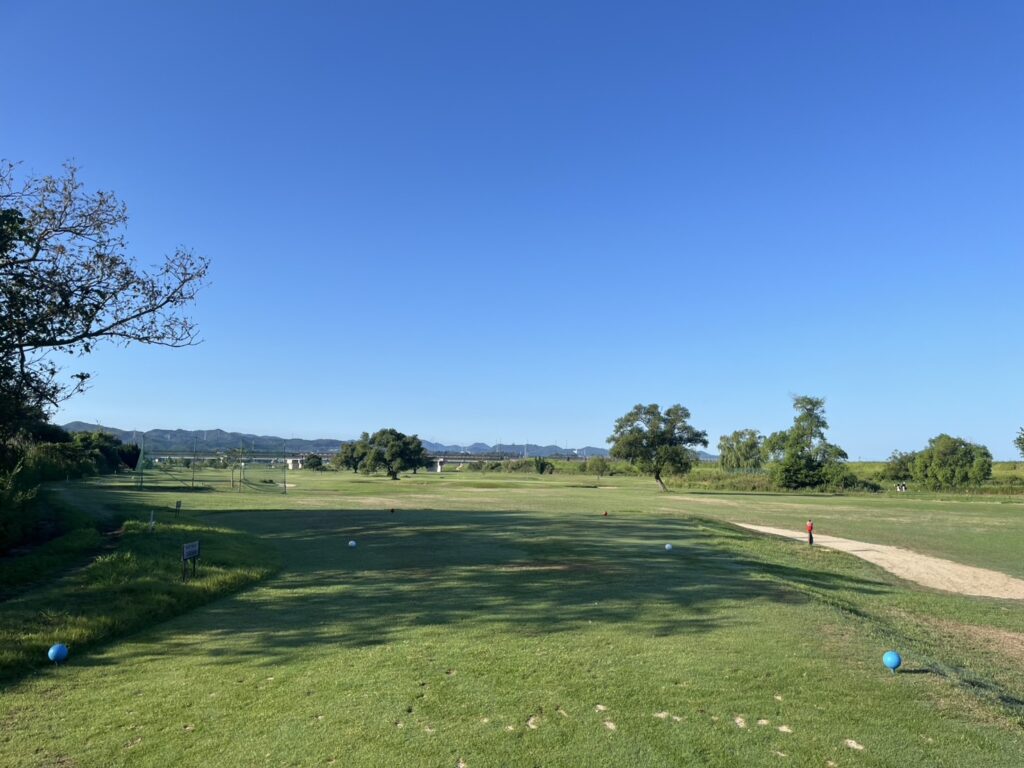 一級河川、斐伊川の河川敷にあるゴルフ場で、9ホール×2周(Par68)ですが、ちゃんとPar5のホールもあります。
