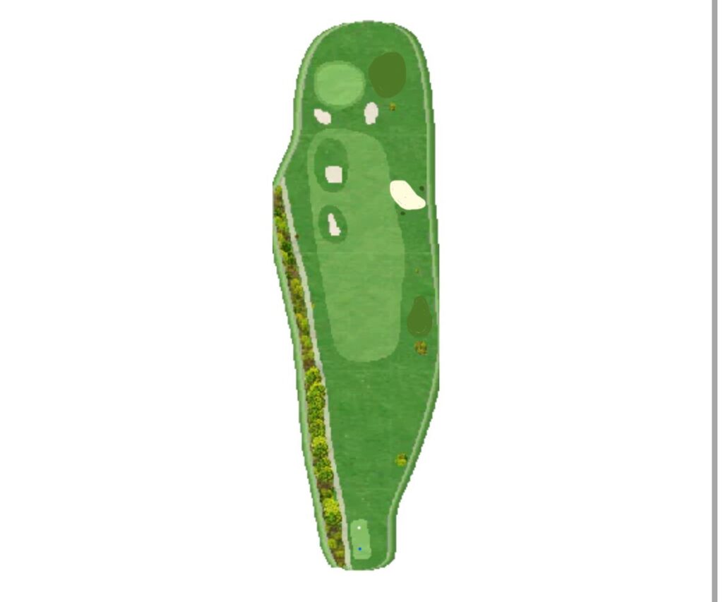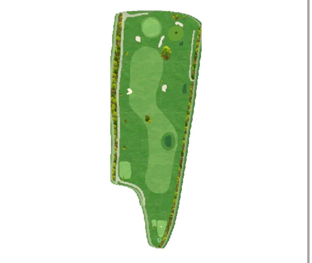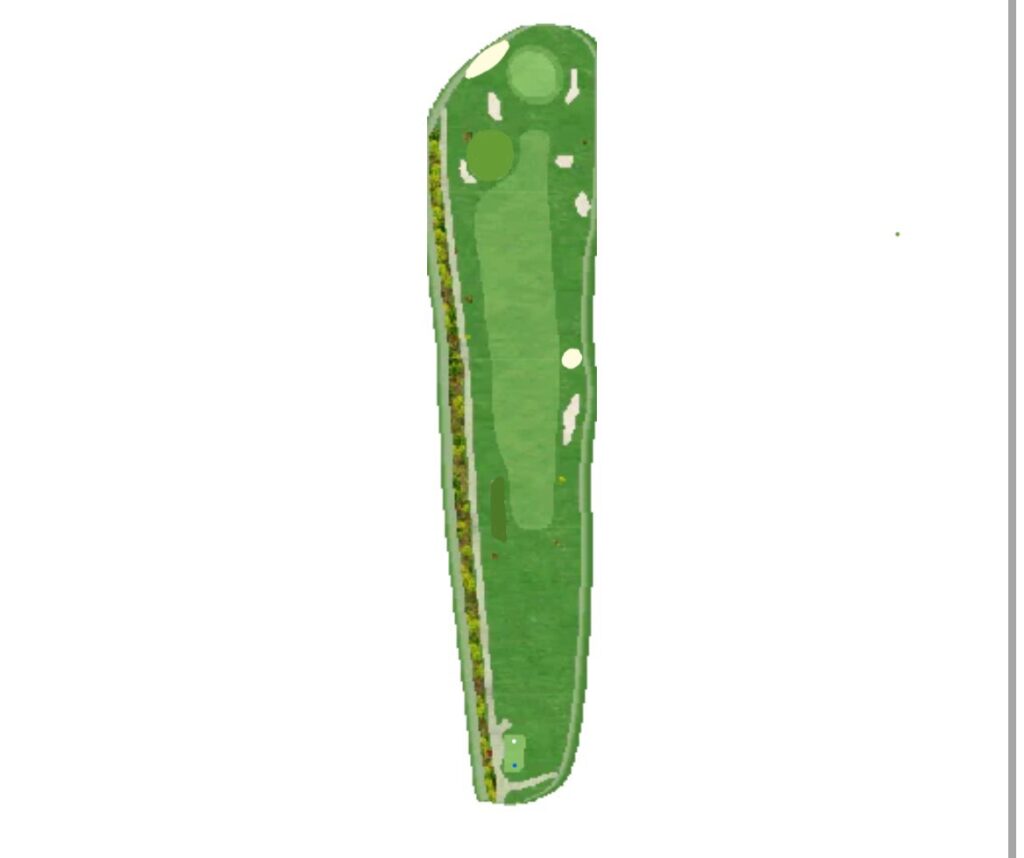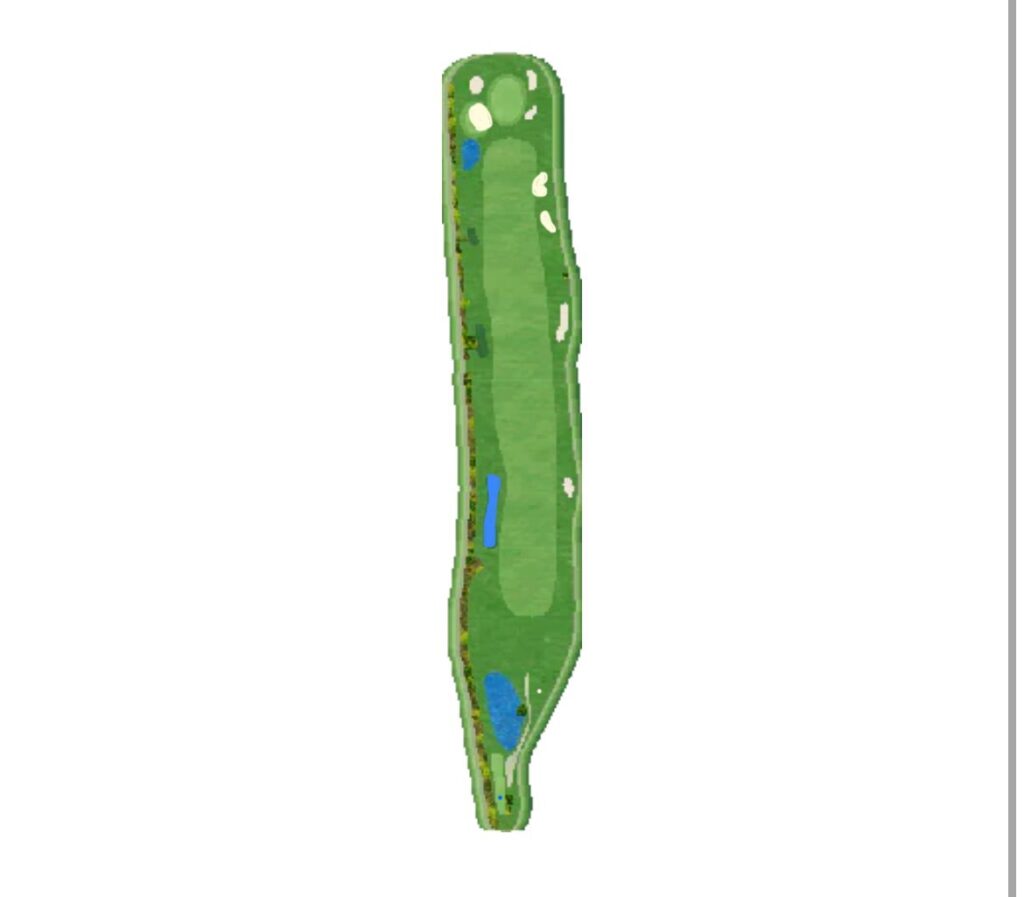 そのためセカンドは高い球でグリーンを直接狙いたいが、ティーショットで近づきすぎると、フェアウェイの木が邪魔になる。