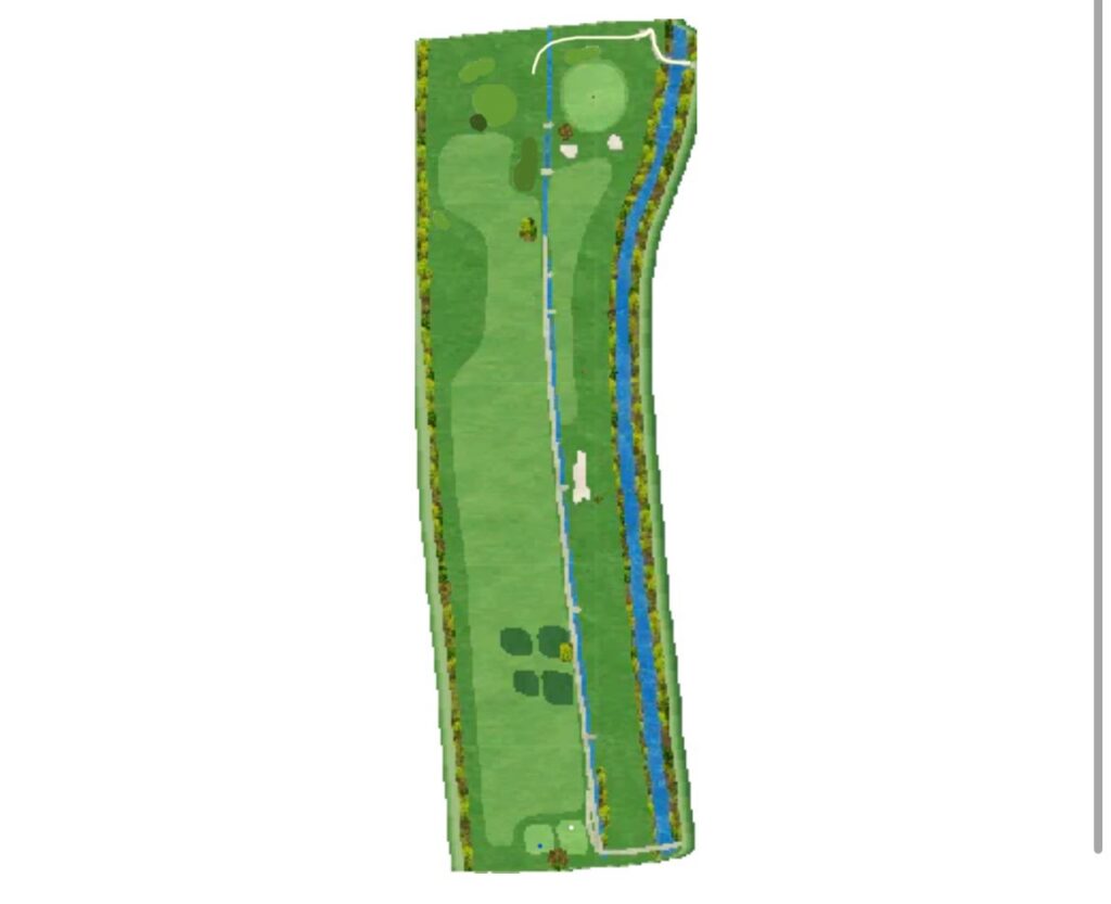 今までと違い、川と並行に真っ直ぐ方向ではなく少し斜めにティーショットを打つことになるので、風向きに注意。