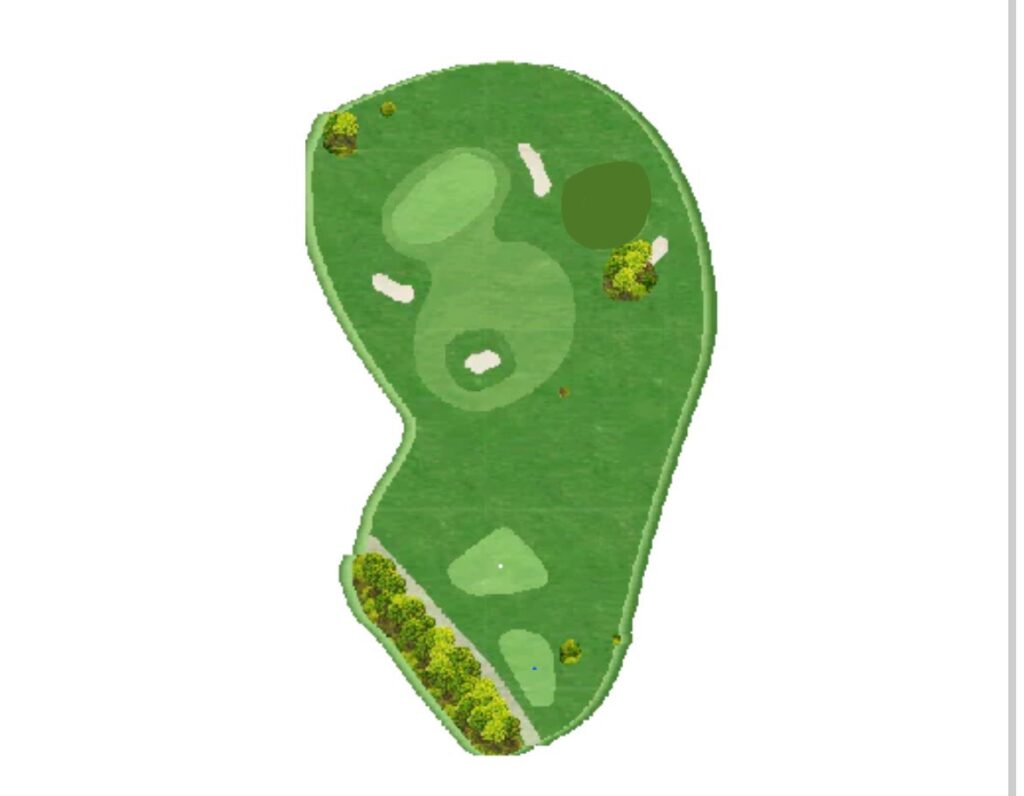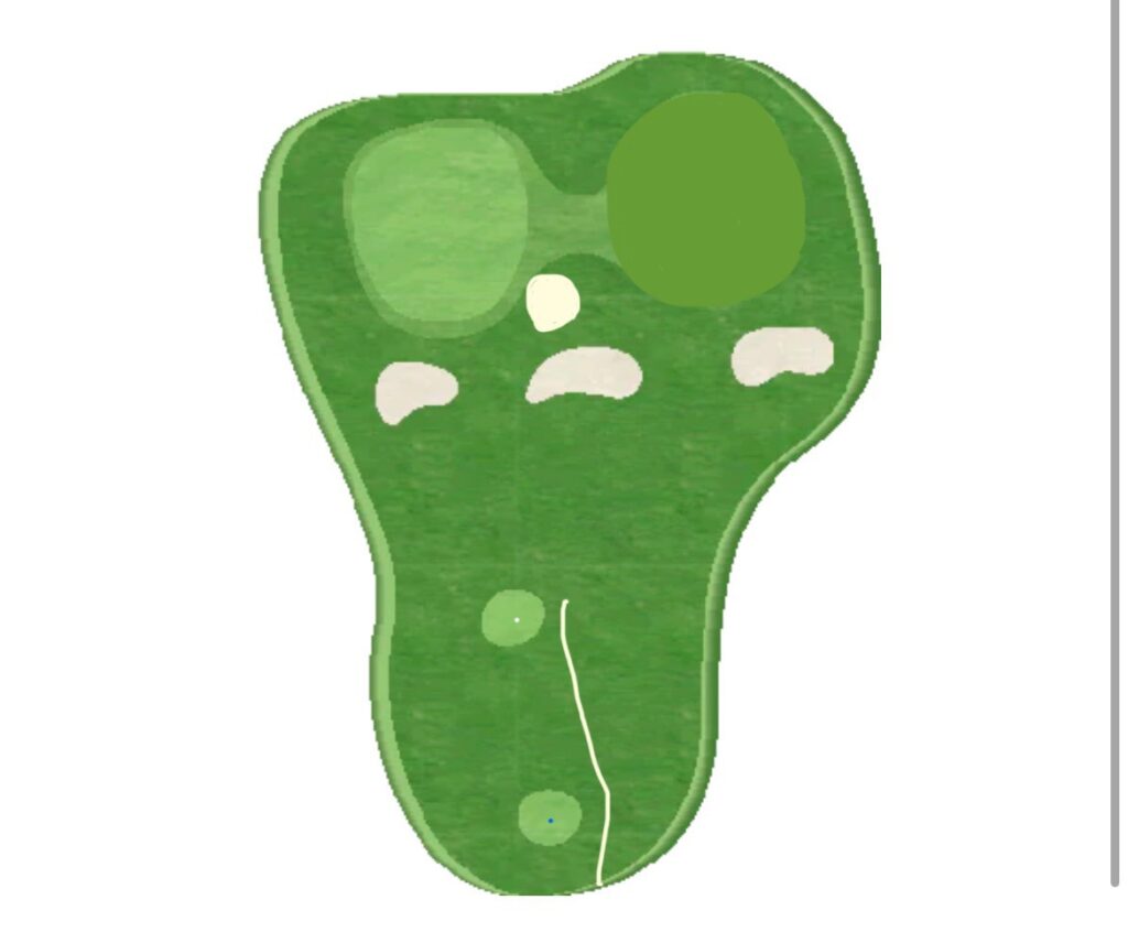 グリーンは手前から奥に下っており、手前にはバンカーが待ち構えている。