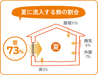 中でも、窓から入ってくる熱は全体の内73%を占めているんです![]()