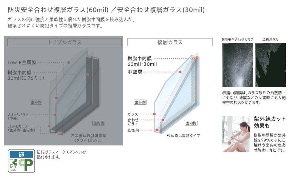『YKKAP/マドリモ/樹脂窓(ハイブリッド枠)+安全合わせ硝子』
