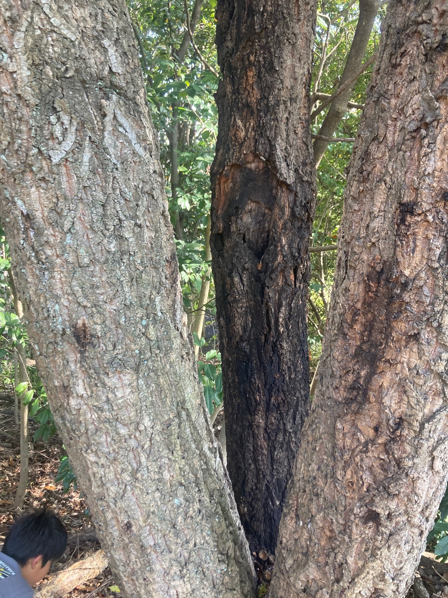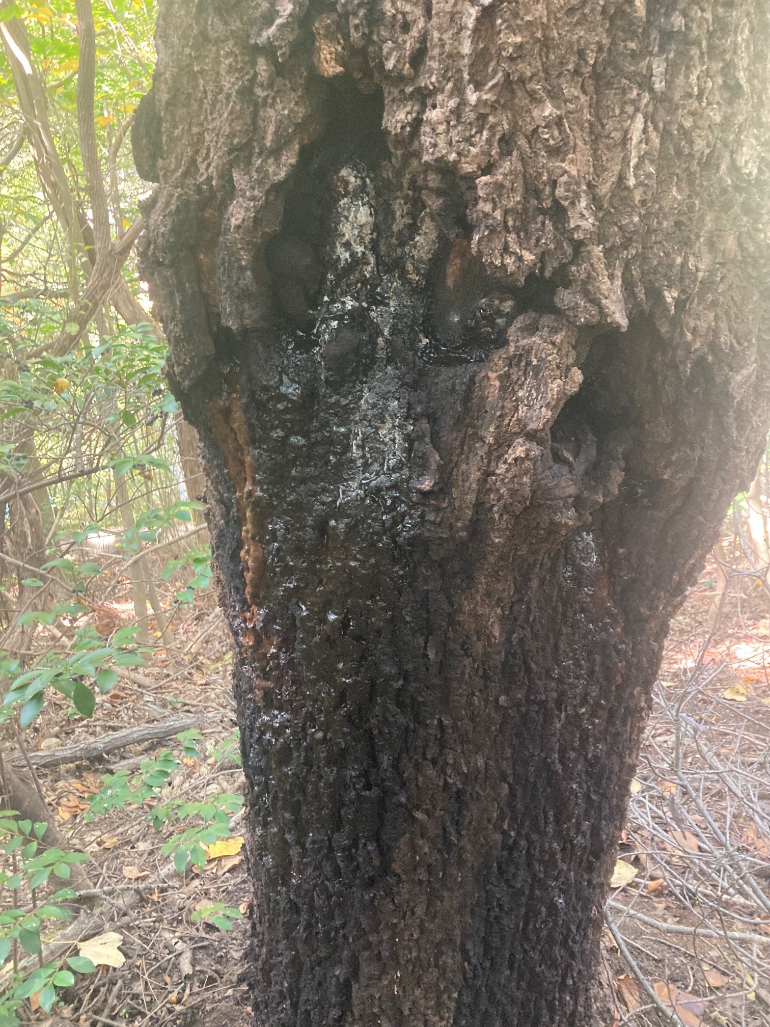 こんなかんじで広葉樹が不自然にボコボコしていたり、黒くなっている場合は樹液がで