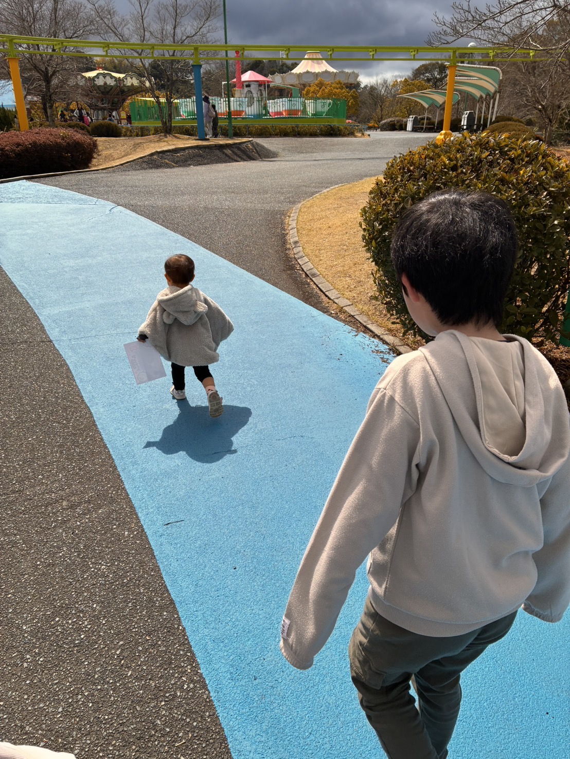 手を繋ぎたい兄と、兄の手を振りほどいて走り出した妹。
