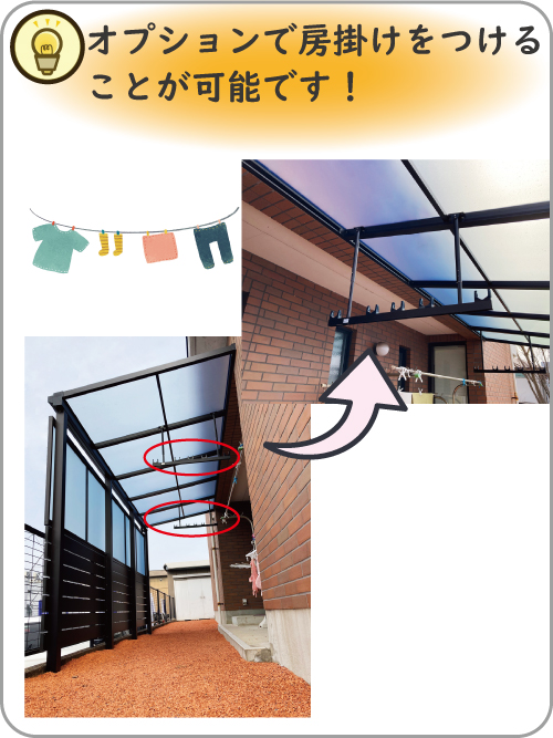 目隠しはもちろんですが、雨の日にも洗濯が干せて便利です!