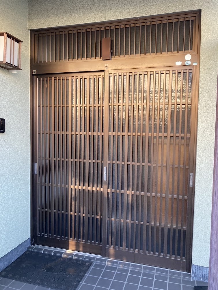 玄関引戸は年数が経つとコマ(戸車)が劣化したり、歪みが出てきたりして動きが悪くなることがあります。
