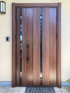 出入口玄関ドア木の風合いは残したまま、耐久性の高い玄関に!