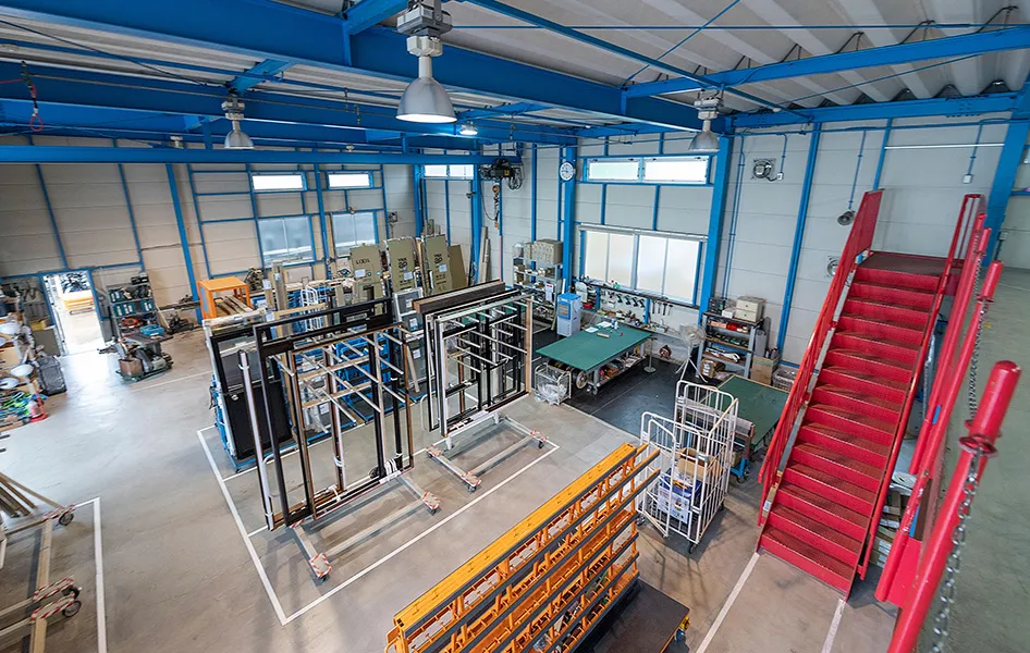 広く清潔感のある工場でサッシを組立てています。