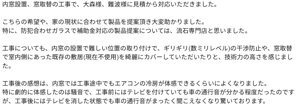 こちらでは、窓屋に実際に寄せられたお客様の声をご紹介しています。