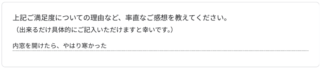 工事後の感想は、内窓では工事途中でもエアコンの冷房が体感できるくらいによくなりました。